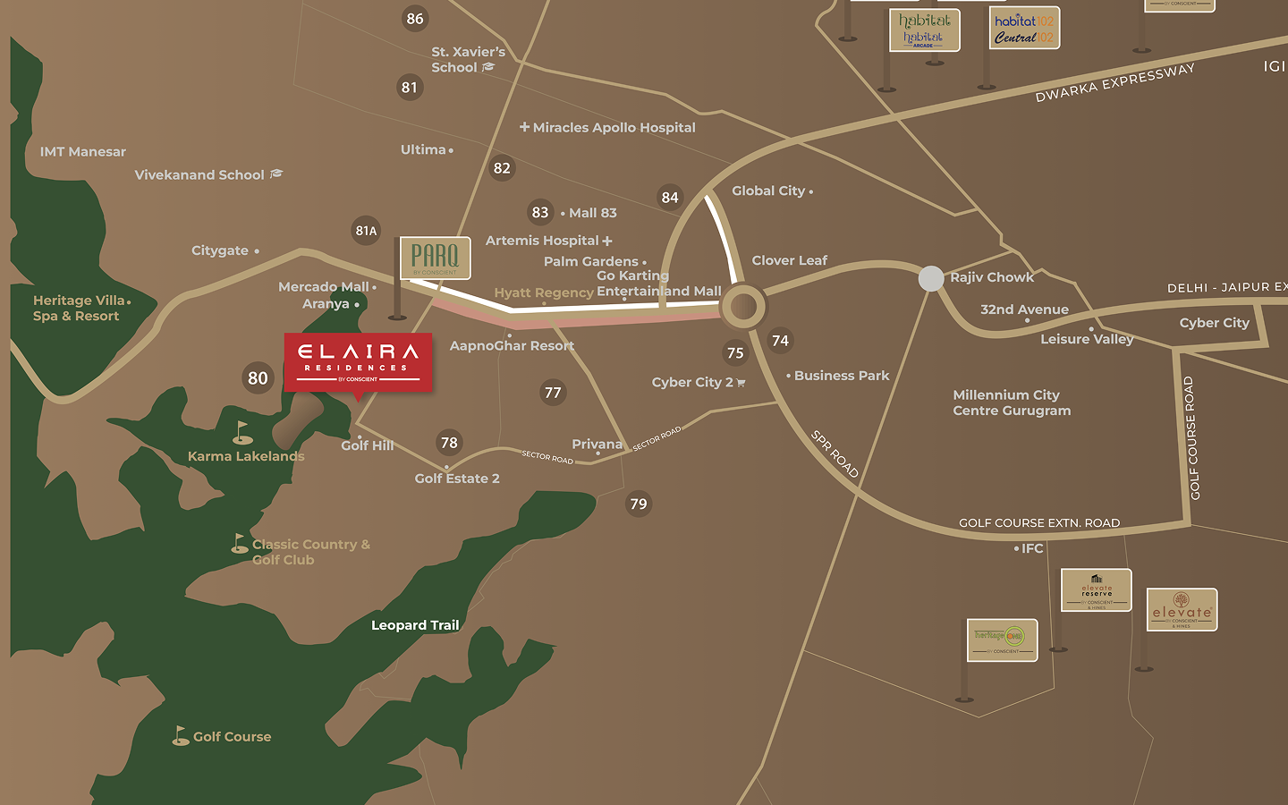 Welcome to Elaira Residences by Conscient, an exclusive residential enclave that offers a world where luxury knows no bounds and nature’s beauty has no end. Nestled in the embrace of the Aravalli Range, this project provides an unprecedented living experience in Gurugram’s most pristine location. Offering meticulously designed 3 BHK Apartments, every space is crafted to inspire, elevate, and redefine modern living. Designed in pursuit of a limitless lifestyle, every space is crafted to inspire, elevate, and redefine urban living. It’s a location perfectly poised for a life without limits, blending refined living with the calming embrace of nature.